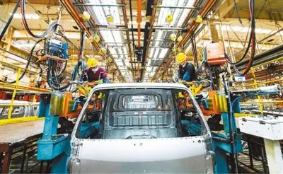 汽车零部件众多,被誉为“制造工业的明珠”。图为工人在山东省青州市一家规模制造企业车间内进行汽车生产作业。 王继林摄(人民视觉)