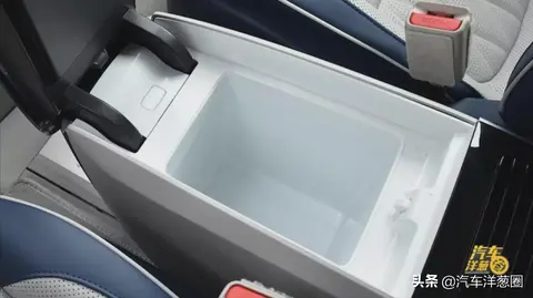 比如这个扶手箱,官方称之为“魔吧”。前面是一个小冰箱,后方是个可升降的茶台。只需要语音呼唤或者触控,就能在第一排和第三排之间滑动。