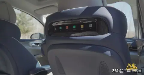 第二个创意是,顶配车型的前排座椅后面,各有一个小触控屏,具备天气时间显示、音乐播放、导航进程等信息,不过当你在第二排舒服坐着的时候,想要够到这个屏幕还挺费劲的。