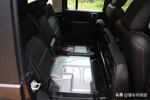 当然,充电口被设计在这个位置,也是出于安全考量,牧马人4xe的最大涉水深度可达76厘米,而充电口的位置高于最大涉水深度,所以可以保证相关部件的安全。另外,电池组也被放在了后排座椅下方,这样首先可以保证车辆通过性不会受到影响,其次也可以让车辆在越野时,电池不会受到任何磕碰冲击,避免引发相应事故。所以我们或许可以认为,即便这辆车加入了电气系统,但最起码它先是一辆牧马人,其次才是牧马人4xe。