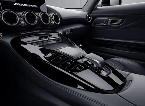 因此AMG GT Black Series在整体设计上大量借鉴AMG GT3的设计,但为了追求更轻,全车大部分使用碳纤维材质打造,连传动轴都没有放过,碳纤维化的传动轴仅为13.9公斤重。不能使用碳纤维的地方比如座舱内门把手,用了皮革材质,后挡风玻璃用了超轻玻璃。其他的零部件也使用了轻量化铝合金来打造。