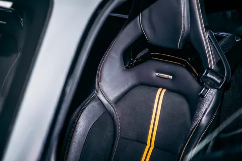 AMG GT Black Series的内饰与AMG GTR相近,同样拥有9段牵引力可调的小黄钮,液晶仪表盘表底显示的是360km/h,一看就知道这车不一般。受限于国内严格的道路交通安全法规,GT Black Series原厂提供的赛车桶椅、防滚架和车载灭火器都被取消,座椅改为普通的AMG运动座椅。