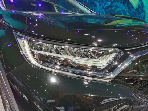 CR-V的外观设计整体上是想设计成一款比较运动的车型,我们可以看到CR-V的大灯灯组设计感很强,分体矩阵式的大灯由全LED光源组成,颗颗粒粒有序摆放在那里。车头的造型设计比较多,整体的运动氛围营造得比较到位。