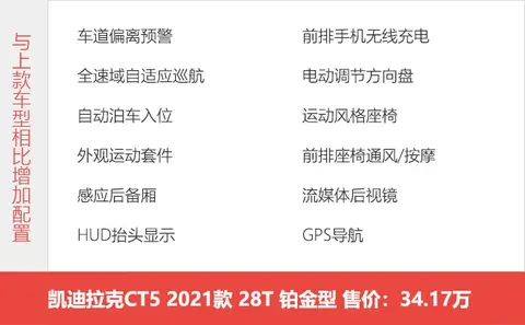 2021年5月份,凯迪拉克官方对CT5车系进行了一定调整,首先是新增了一款2.0T 尊贵型,然后对其它配置车款进行了精简,现在共分为风尚型、豪华型、尊贵型、铂金型,凯迪拉克CT5将原来的技术型、时尚型、时尚运动型合并成了现在的风尚型,全系2.0T高功率、10AT,价格差异只体现一些配置层面,所以做出选择,并非难事。