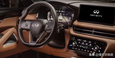 英菲尼迪全新QX60采用了全新的布局风格,其配备有12.3英寸悬浮式显示屏、12.3英寸数字仪表盘以及10.8英寸抬头显示。同时,该车还配备有三辐式方向盘、驾驶模式选择以及造型小巧的电子换挡杆。