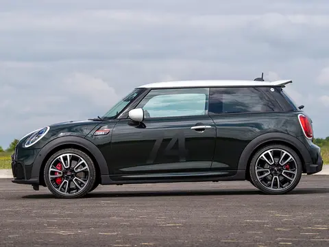 外观方面,新车MINI Cooper JCW车型前脸采用大尺寸的进气格栅,并配备了熏黑式前包围,极具侵略性。车身侧面配备双色五辐式合金轮毂,搭配内部JCW专属红色高性能刹车卡钳,运动感十足。尾部车顶配备了双段式镂空扰流板,搭配后包围上中置排气布局与黑色扩散器,彰显强大性能。此外,由于新车是向60年前第一次赢得比赛的74号赛车致敬,所以还在车门处喷涂了专属“74”图案拉花,提升整体辨识度。