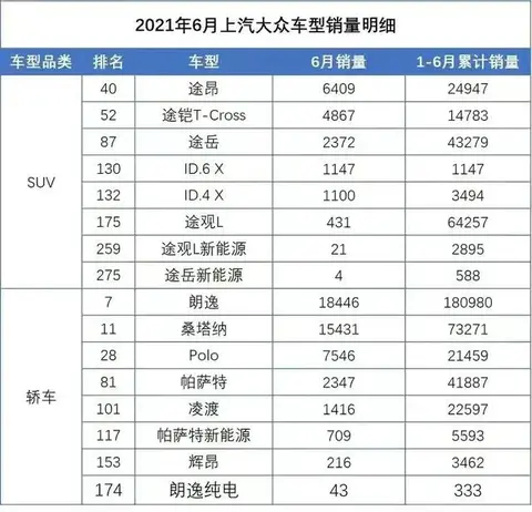 巧合的是改款途观L也将要上市,难道是和帕萨特一块为新车上市攒一把高销量,为新款铺路?销量最好的反而是途昂和途铠。上汽大众销量最高的车型朗逸,一直与日产轩逸争夺第一的位置,结果6月销量只有18446辆,排名第7,这种情况实属少见!