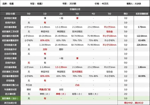 2020款极星2防撞梁评分