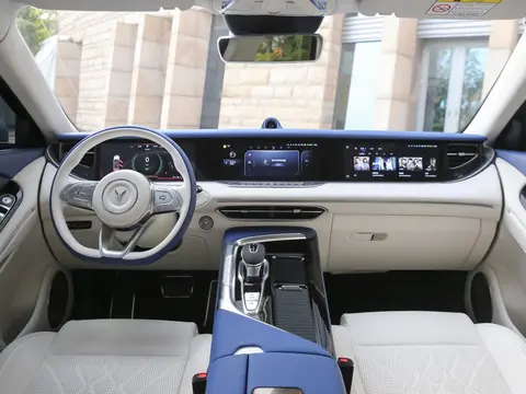 内饰方面,岚图FREE增程版的整体设计在视觉上非常有档次感。大面积的真皮覆盖材料配合上恰到好处的镀铬装饰让整个座舱犹如豪华游艇一般。