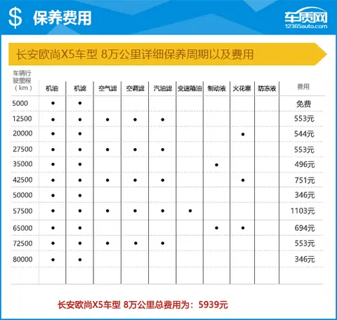 对消费者而言,车辆自购买之日起,更多的开销集中在日常的养护及使用成本上。针对2021款长安欧尚X5日常保养及油耗费用方面,车质网综合目前几大汽车类网站公布的数据进行整理,以供消费者参考:
