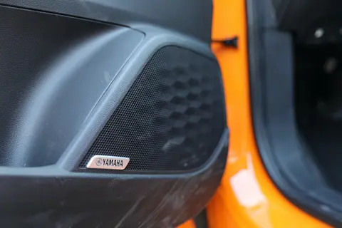 前排一体式运动座椅也是MG ONE-α版本的专属配置,黑色真皮包裹配有橙色的缝线处理,另外还有橙色的安全带,不论是视觉还是座椅两侧的包裹都足够运动。值得关注的是前排主驾驶座椅的头枕位置还配有一套扬声器,可以向向驾驶者播放实时的导航语音,属于实用又高端的一项高级配置。