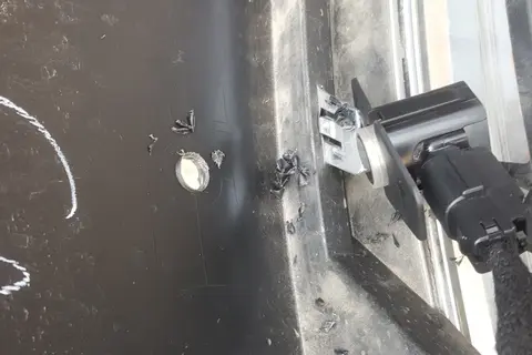 第二步,对保险杠进行打孔。在原车保险杠的内侧可以看到,其实上面已经原厂画有雷达探头的安装位置,只不过没有开孔。因此,只要是按照这个位置图进行打孔就可以的。打孔时要注意保持好角度和稳定,否则可能导致跟探头间出现缝隙,影响美观度。