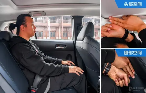 前排座椅位置不变的情况下坐进后排,腿部剩余空间一拳三指,头部剩余空间一拳两指,虽然腿部有些局促,但是头部空间相对宽敞,另外座椅坐垫可以较好的承托住腿部,所以舒适度也算说得过去。后排座椅靠背还支持6°的角度调节。