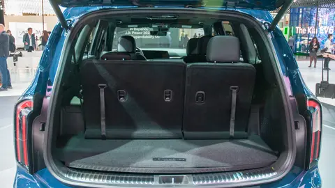 在北美地区车型配置中,起亚Telluride新增了X-Line和X-Pro两款车型,其中X-Line版主打造型方面,该版本配有车顶行李、车身离地间隙增高10mm、20英寸轮毂、带有拖拽防摇摆功能以及带有TOW驾驶模式等。