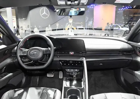 外观方面,其实普通车型的伊兰特外观设计就足够炫酷,这也是伊兰特销量高的主要原因,前脸造型比较硬朗,引擎盖上有四条隆起的筋线,突出力量感,格栅则采用倒梯形设计,几乎覆盖了整个前脸,内部则是金属网状饰条装饰,全黑涂装看起来更加运动,这也是现代汽车最新的Sensuous Sportiness感性运动设计理念。