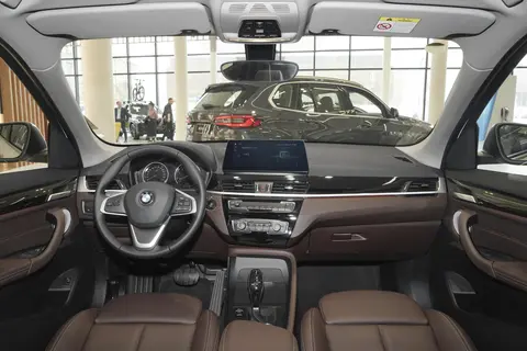 宝马X1内饰部分中控台上方采用大面积搪塑材料包裹,下方仪表台部分采用一块非全液晶仪表搭配真皮包裹的多功能方向盘,整个方向盘比较粗握起来比较有信心。中间一块悬浮式10.25英寸的中控屏,下方一根金属拉丝饰条贯穿,整个内饰看起来横向视觉感比较宽。
