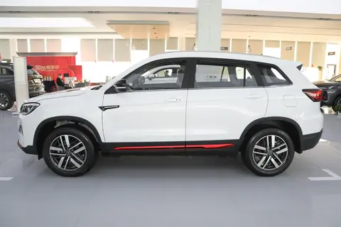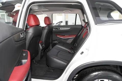 车身侧面最上方依旧是行李架,车门中部一条硬朗的腰线从车头一直贯穿到车尾,下方黑色饰条中间一根红色饰条点缀,轮胎采用225/60 R18,整个车身比较中庸。