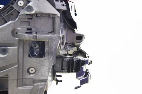 这辆宝马i3(图片|配置|询价)是基于宝马最新的模块化CLAR平台打造,和汽油版3系同平台。那么内部情况如何呢?今天我们就把这辆车拆开,从防撞梁开始,一起来看看。