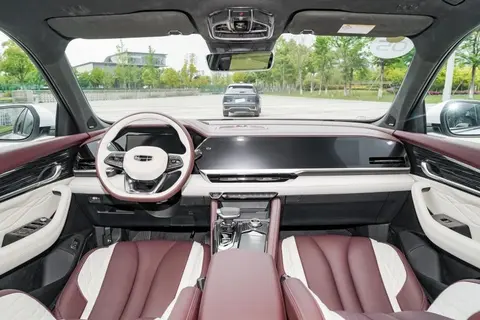 吉利星越L内饰采用贯穿式屏幕设计,内饰设计相对稳重,采用贯穿式屏幕、高中央通道等设计,仪表盘也采用了12.3英寸的全液晶仪表盘,搭配2块12.3英寸的多媒体屏幕,看起来还是比较新颖的。星越L的燃油版本具有两种内饰配色,标配为白棕配色,用户还可以选装翠羽蓝配色内饰。多媒体预装了银河OS智能车载系统,支持多种第三方APP,满足用户使用绰绰有余。