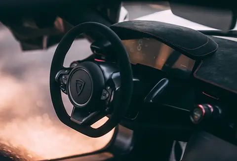 虽然定位为纯电动超级跑车,不过锐马克Nevera的内饰却并不“寒酸”,中控台采用翻毛皮+碳纤维材质打造,战斗气息十分浓郁。配置方面,包括多功能方向盘、悬浮式中控屏、空调系统等都有配备,舒适性和实用性表现均能够令人满意。