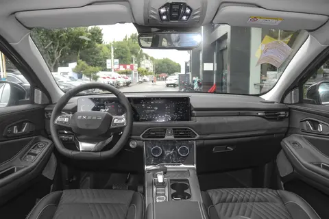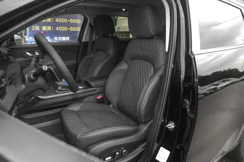 内饰方面的质感比较突出,中控台的造型饱满,并且体现出一定的层次感,平底方向盘的造型饱满,下部粗壮的银色元素强调了一定的力量感,此外,游艇式的挡把也比较抓人眼球。车内配备了双联屏设计,两块屏幕的尺寸均为12.3英寸,搭载Lion4.0+雄狮智云车机系统,功能上比较丰富。此外,新车还配备了索尼音响,根据版本的不同提供8/12扬声器。