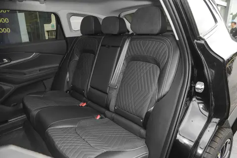 乘坐方面,新车的座椅造型宽厚,密集的缝线带来了不一般的视觉体验,并且整体包裹性不错,落座舒适性也比较好。空间方面,身高173cm的体验者落座前排,头部余量一拳半,后排头部一拳,腿部两拳半,表现宽敞。