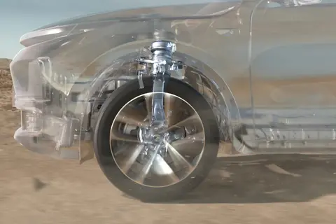 新车标配理想自研的魔毯悬架系统【前双叉臂独立悬架、后多连杆独立悬架,支持空气悬架(带软硬+高低调节)】