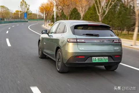 这台车另一个重头戏,是它搭载的HUAWEIDATS动态自适应扭矩系统。相比燃油车时代单一的ESP系统,它可利用VCU作为指令控制器,配合MCU系统的扭矩调节机构,对路面感知的扭矩响应延时快了近百倍。因此在极限弯道环境下,操控稳健性可以显著提升;相比传统新能源车的单链式信号传导结构,MCU可接受电机系统的旋变信号,实现逆向调节,实时感知路况,调节更加精确。