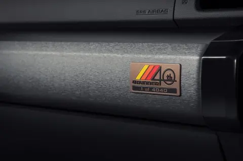 车尾处,也是一整个黑色的基调,另外在加上黄铜色的车标和4RUNNER的标识搭配,显得其非常的沉稳与成熟,除此之外,其尾部左下角出还有4RUNNER 40周年的独特标识,辨识度可谓是非常高了。