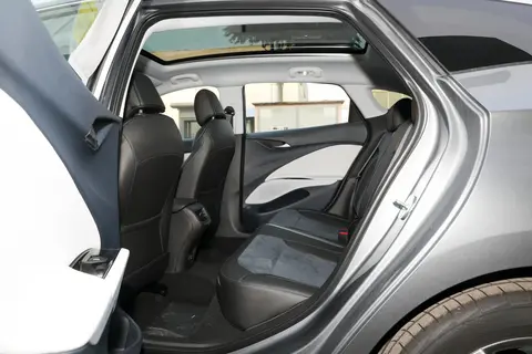 同一体验者来到后排,此时后排头部空间为4指,腿部空间余量为2拳2指,车内空间宽敞。