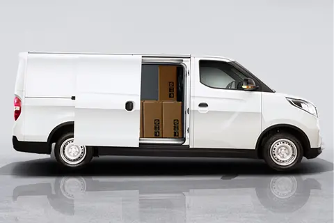 作为一款物流车型,新款上汽大通EV30的货厢区并未配备玻璃,且采用单侧侧滑门和对开式尾门的布局,方便搬运物品。至于车身尺寸方面,新款上汽大通EV30短轴版的长宽高分别为4500/1780/1898毫米,轴距2910毫米;而长轴版本的长宽高则分别是5090/1780/1916(1915)毫米,轴距达到3285毫米。