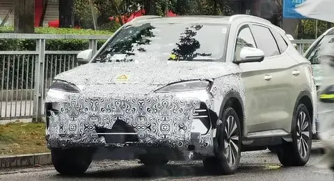 从谍照看,新车整体外观沿用比亚迪Dragon Face家族化的设计语言。前脸将采用外凸封闭式前格栅,显得更加运动。两侧采用类似于海豹的海悦双U悬浮式大灯组,造型十分的犀利。