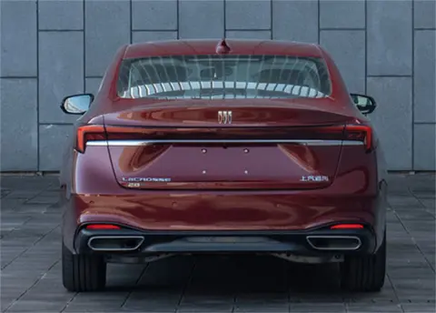 新车尾部换装了贯穿式尾灯,并针对灯腔进行了熏黑处理,继续向两侧延伸出“镰刀”样式,这也是别克家族化的设计,灯带下方加入有镀铬饰条,有助于丰富尾部的层次感。后包围由黑色材质组成,还配有双边镀铬排气来提升运动气息。