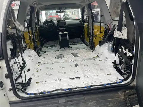 丰田普拉多(图片|配置|询价)是一款在设计上较为粗犷的硬派SUV,也正是因为这样,使得其在行驶时车厢内噪声非常的大,长时间用车耳朵也会非常的难受,为了能够降低爱车的噪声,车主在网上对多个隔音产品做了对比后,选择在昆明丽声使用大白鲨做隔音处理。