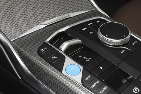 进入车内,首先映入眼帘的是一整块的双联屏,液晶仪表和中控屏尺寸分别达到12.3英寸和14.9英寸,再加上内置的宝马iDrive 8.0智联系统,让这款车的科技感得以充分体现。其他部分的设计以黑色软包为主,辅以木纹亮条和棕色座椅点缀,整体给人十分典雅的感觉。