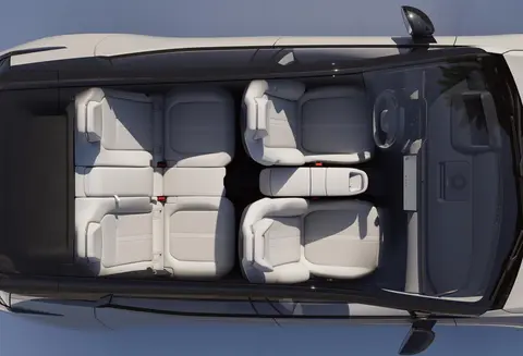 包括座舱内的车门同样是通过按键的方式开启和闭合,它的车门内里有一处圆角方形的按钮,按下去就能对车门进行操作。为了不让车门在自动开启时碰撞到周边的障碍物,它的车门上带有感知硬件,可以感知到周边存在的障碍物,如果车门外近距离容易发生碰撞,车门在开启时就会在接近障碍物时停下自动开启动作,也能通过这样的方式提醒车内用户旁边有障碍。这款车型在座舱内的布局方式有两种,分别是五座版本和四座版本,我们今天主要说它的四座版本。