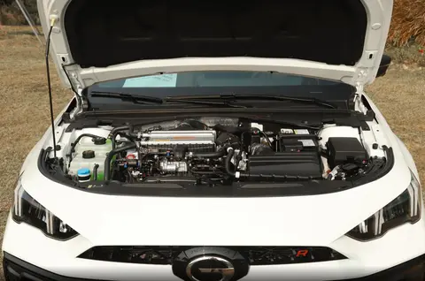 内饰主体造型没有大的变化,不过前排两个独立赛车运动座椅提供了专属的字母R刺绣装饰,中控台面上继续提供贯穿双大屏配置,屏幕UI界面设计更激进一点,尤其中控屏幕可以作为运动模式显示面板,甚至可以显示喷油压力以及机油温度等细节参数。