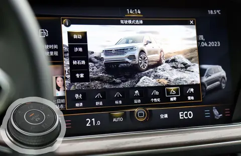 配合位于排挡杆后方的驾驶模式旋钮,选择适合的驾驶模式,空气悬挂也会转换为更合适的高度和工作状态。多种驾驶模式让途锐开起来更简单,但却可以应对更复杂的路况,这也让途锐成为了一款综合性能很强的SUV车型。