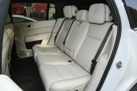 座椅同样为真皮材质,座椅设计上注重舒适感,采用Nappa真皮的皮质风格,设计上采用较为饱满的填充物,头枕额外增加一个可拆卸的头枕包。座椅布局为前二后三的大五座设计,后排空间上也是非常充足的,在体验实测时,做好后后排座椅留出空间还可放置一个不小的行李箱。