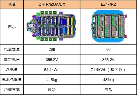 ▲丰田bZ4X松下版电芯与宁德版电芯基本参数对比