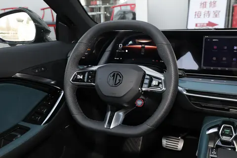 在内饰设计方面,MG7提供了两种配色方案:玄清黑和孔雀绿。中控整体布局较为传统,采用T型设计,但配备了12.3英寸双屏设计(液晶仪表盘+中控娱乐屏)。内饰搭载斑马洛神车载智能系统,支持OTA升级和车联网等功能。方向盘的设计也非常独特,方向盘上还有一个红色按钮,通常是为性能车设计的。但是,红色按钮的功能因配置而异。内饰也采用了大量的软质材料包裹,具有一定的豪华感。