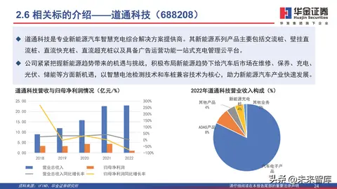 道通科技是专业新能源汽车智慧充电综合解决方案提供商。其新能源系列产品主要包括交流桩、壁挂直流桩、直流快充桩、直流超充桩以及具备广告运营功能一站式充电管理云平台。公司紧紧把握新能源趋势带来的机遇与挑战,积极布局新能源趋势下给汽车后市场在维修、保养、充电、光伏、储能等方面新机遇,以智慧电池检测技术和车桩兼容技术为核心,助力新能源汽车产业快速发展。