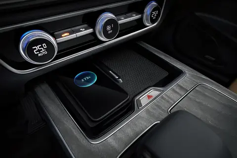 红旗HS5的内饰乍一看好像变化不大,都是双联屏布局,但细节上有所调整,如空调区域换成旋钮控制,更加方便盲操,视觉上也更清爽一些。马鞍部挡把区域布置得更高更宽,规规整整的,而且是木纹装饰,有豪华车的氛围,还增加了2个无线充电,与时俱进。