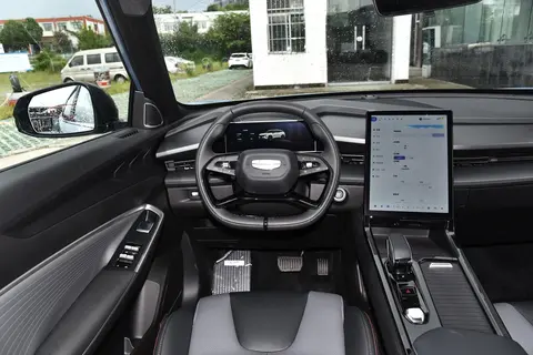 作为主打年轻市场的车型,先要看看科技配置。中控触摸屏是竖屏设计,和方向盘在同一个水平位置上。尺寸是13.2英寸。尺寸不小,位置挺合适的。无论阅读还是操作,都挺方便的。像素密度182PPI,分辨率1440x1920。屏幕显示清晰颜色饱满,看起来很舒服的。车机是吉利银河OS Air。用了高通骁龙8155芯片。软硬件都在第一梯队的水平。