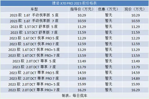 车型选择,X70 PRO全系共有14款车型,我们将不同版的5座与7座车型合并,这样就是7款车型。其中1.5T仅有DCT舒享版,这套动力加速疲弱,建议用户尽量选择1.6T以上车型。