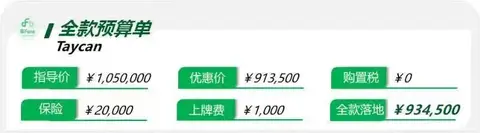 按照105万来计算,目前全款优惠13个点,分期优惠16个点,再买个保险就可以了。Taycan也是店里唯一优惠不绑定装潢的,如果车放时间长点,送装潢也不是没可能。