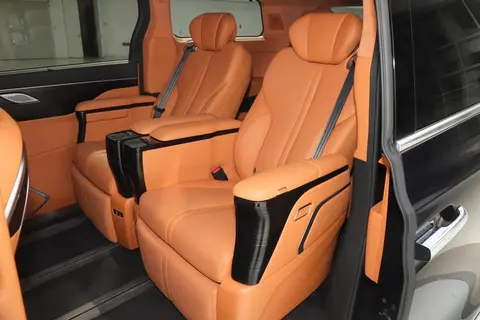 提供2+2+2的六座布局,第二排第三排全部为独立座椅带有腿托,采用NAPPA皮革包覆,且每个座位都支持电动调节(带加热/通风),前两排配备了按摩功能,车内后排顶棚点缀830个星点、680个满天星,拥有5颗动态流星,共同组成了动态星空穹顶,具有流星和流星雨2大动态模式,提供清风过境、都市风情、午后庭院三种主题香型的香氛系统供消费者选择,配备 20扬声器的哈曼卡顿音响等,将豪华氛围拉满。