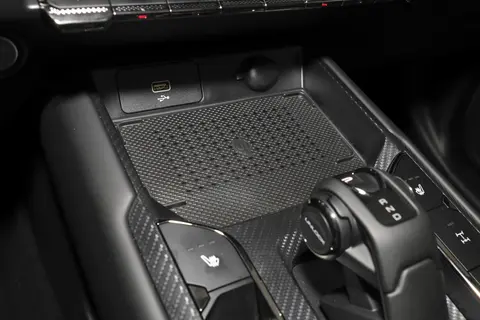 车内,目前只提供黑色内饰,也是大量的简单线条勾勒。使用12.3英寸液晶仪表盘+14.6英寸液晶中控屏幕,中控屏幕下方是大小椭圆形包围的空调出风口,再往下保留了物理按键来控制空调等功能,电子挡把两侧也有驻车按键和四驱控制按键。