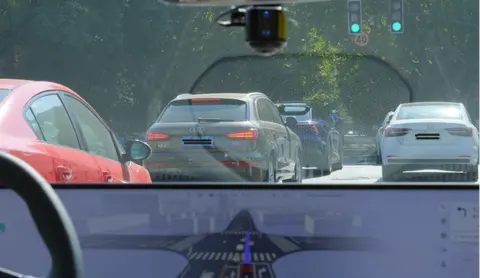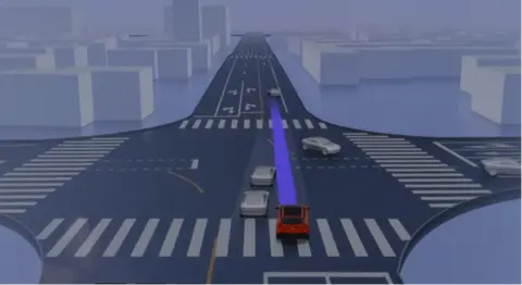 我问工程师,如果纯靠视觉,不走V2X车协协同的话,那前面是一台一辆大货车或者公交车,你直接被遮挡住了红绿灯,这时候车辆会怎么样。工程师很自信,人类会怎么操作,车就会怎么操作,言下之意就是,车辆会在停止线前进行减速,等前方大车通过后,再次确认信号灯,然后再决定下一步动作。