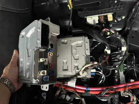 今天我们到广州的某一家SSSS店升级小柏林音响,24款奔驰GLE450属于中期改款了,原车的主机被减配了 没有预留柏林光纤口,所以需要更换个高配主机,更换主机后能实现